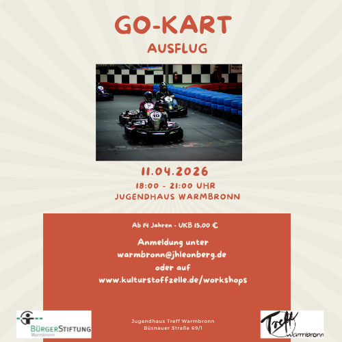 Das Jugendhaus lädt dich zu einem Go-Kart-Ausflug ein! Spüre den Fahrtwind, liefere dir spannende Rennen mit deinen Freunden und erlebe einen Tag voller Adrenalin und guter Laune. Egal ob Anfänger oder Rennprofi – hier kommt jeder auf seine Kosten.